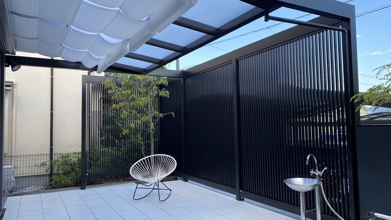 できたら道路や隣地からの目を気にせず思いっきり楽しみたいということで、2.4mの目隠しスクリーンを取り付けました。